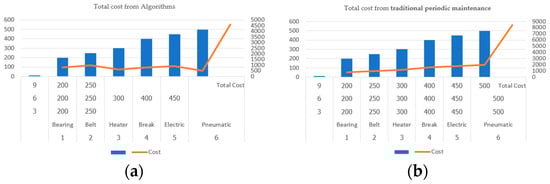 Total cost for maintenance (a) Total cost from algorithms; (b) Total cost from traditional periodic maintenance.