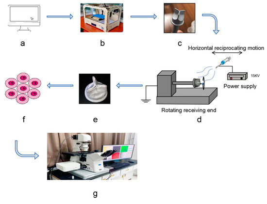 In traditional treatment, mechanical valves, biogenic valves, and even allogeneic valves are often used to replace the diseased heart valves [4]. Each of these methods has its own advantages and disadvantages. The mainstream materials for mechanical heart valves are pyrolytic carbon, titanium alloys, stainless steel, etc. [5]. Mechanical valve preparation is simple and inexpensive, but its disadvantages are also obvious, such as poor blood compatibility [6]. In order to reduce the risk of thrombosis, patients need to take anticoagulant drugs for a long time, which can affect the body’s coagulation function and increase the risk of bleeding, such as gum bleeding, skin bruising, etc. In severe cases, cerebral hemorrhage may even occur [7]. Bioderived heart valves have good biocompatibility and excellent mechanical properties, but the disadvantage is that they have a low service life [8]. The characteristics of the biomaterial itself determine that under long-term cardiac hemodynamic pressure, tissue degradation, calcification, and other phenomena will gradually occur, and allografts such as porcine heart valves or bovine pericardium last only 10–15 years [9]. Allogeneic transplantation lacks a stable source, and organ transplantation requires more prevention of immune rejection. So, it is particularly important to develop a new and efficient method for treating heart valves. The tissue-engineered heart valve has been a promising heart valve in recent years. It can mimic the characteristics of the original tissue and has the ability to grow, repair, and remodel in vivo. Of course, many methods have been invented to prepare tissue-engineered heart valves. Techniques such as weaving and 3D printing can be applied in this direction [10]. However, compared with these methods, we need a fast, fine, and tunable structure preparation method [11], which shows great significance in the research and development of new treatment strategies for heart valve diseases.