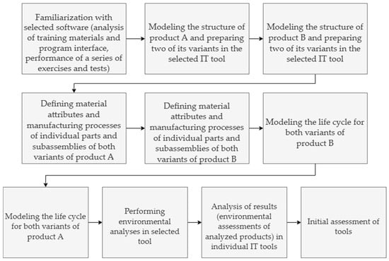 In order to analyze, compare, and initially evaluate the IT tools for environmental analysis, it was necessary to first plan and then perform a series of activities. The most important of them are presented in the diagram below (Figure 3). For each of the three analyzed tools, the work plan was the same.