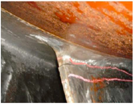 It is not uncommon for Francis runners to suffer crack damage in power plants around the world [6,7]. During the overhaul of the Francis turbines in a hydropower plant, it was found that many blades of the Francis runners had cracks (Figure 1). To add insult to injury, this phenomenon did not only appear on one Francis runner but existed in several runners of the power plant.