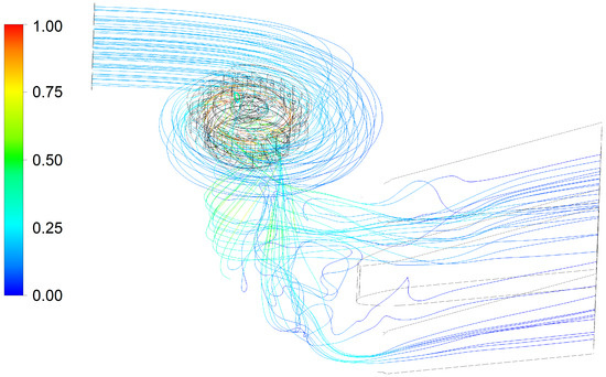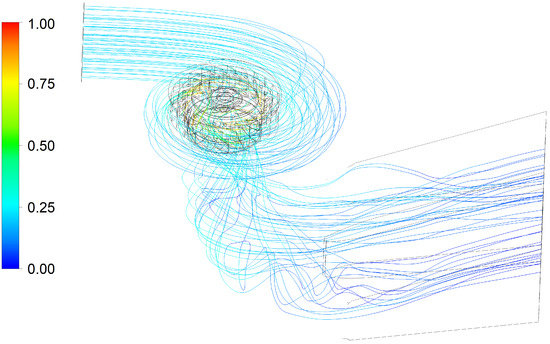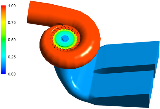As shown in Equation (4), the flow-induced stress of the turbine unit can be further calculated with the elasticity matrix , strain–displacement matrix , and structural displacement , solved by Equation (3).