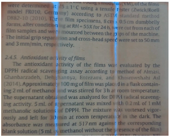 - Sukyai, P.; Anongjanya, P.; Bunyahwuthakul, N.; Kongsin, K.; Harnkarnsujarit, N.; Sukatta, U.; Sothornvit, R.; Chollakup, R. Effect of cellulose nanocrystals from sugarcane bagasse on whey protein isolate-based films. Food Res. Int. 2018, 107, 528–535. [Google Scholar] [CrossRef]