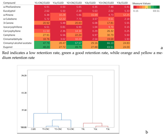 3.4. Analysis of Volatiles of CLEO and Y-CNCs by SPME GC/MS