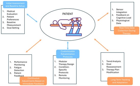 The integration of AR and serious gaming into therapeutic practices enables personalized rehabilitation. This approach allows therapy to be tailored according to the patient’s progress, preferences, and psychological state. Such customization has the potential to significantly improve rehabilitation outcomes, particularly for patients with severe or persistent neuromotor impairments [40,41].