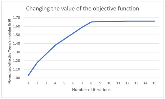 The objective function is described by the effective elastic Young’s modulus in the direction of loading: