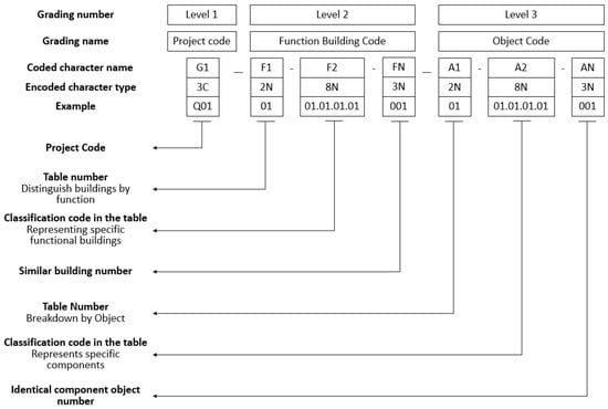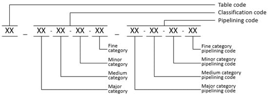 Figure 8. In the coding structure, the classification code should be standardized, while the serial code can be customized according to the specific engineering project. However, it is recommended to use continuous numbering for objects of the same category, starting with “01” or “0001”.