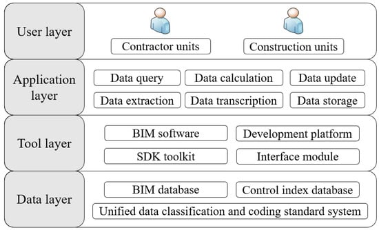 At the same time, mesoscale construction units generally do not pay attention to the specific information of each component. What they need is only a part of the data in each individual building model, or the data calculated from the data in the model, such as the enclosed area of the above-ground room and the enclosed area of the underground room. With a unified data standard coding system, construction units can use plug-in tools to extract relevant control data from the BIM database in a more targeted manner, as well as to further calculate and convert these data. The logical architecture of this process is shown in