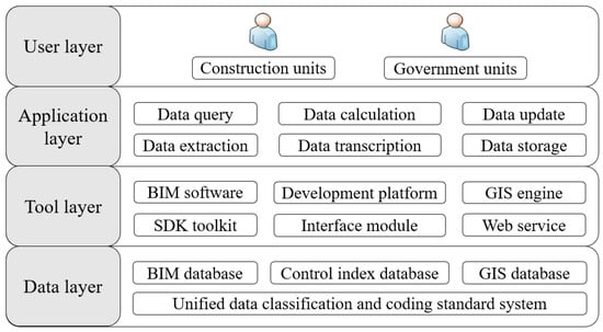 23]. On the other hand, in the collaborative study of meso–macro information, Wang built a government-level BIM public service management platform in Yangpu District of Shanghai, combined BIM and GIS with the platform based on the BIM data of pilot projects in the region and realized the government departments’ mastery of the milestone information of construction group projects [