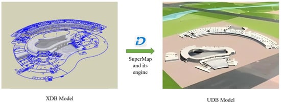 30]. The method proposed in this study is based on the unified information model file format in mesoscale and adopts the method of file format conversion so as to realize the analysis of information model files and import them to the platform. Then, the model is regenerated in the platform so that the information model in BIM and the information model in GIS are integrated.