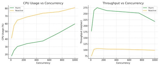 - Joo, Y.H.; Haneklint, C. Comparing Virtual Threads and Reactive WebFlux in Spring: A Comparative Performance Analysis of Concurrency Solutions in Spring. Bachelor’s Thesis, Degree Programme in Computer Engineering, KTH Royal Institute of Technology, Stockholm, Sweden, 2023. [Google Scholar]