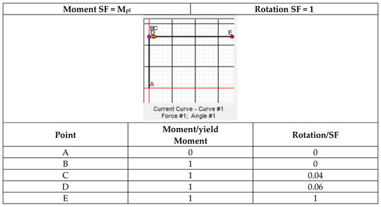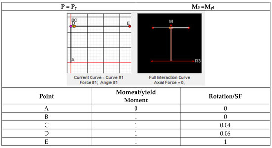 Beams (Figure 3) and columns (Figure 4) have been modelled as beam-column elements with plastic hinges (“P-hinge” elements) located at their ends. Plastic hinges accounting for the interaction between axial force and bending moment have been defined for columns, while for beams the axial force interaction has been neglected. The pushover analysis has been led under displacement control considering both geometrical and mechanical non-linearities.