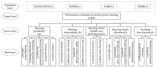 The process of evaluating the working performance of an EPS is a complex and fuzzy process involving multi-factor coupling and multi-level response. The working characteristics of an EPS and its utilization efficiency are influenced by various factors from different aspects. Therefore, to clearly define the evaluation level of the working performance of an EPS, it is necessary to carefully divide the working performance and infer the performance level of the target layer EPS through the performance status of each influencing factor.