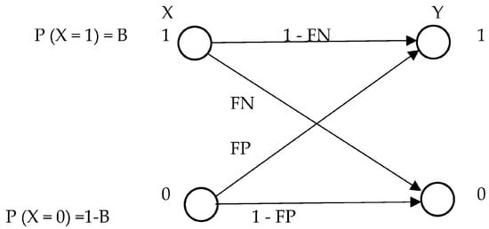 Intrusion detection can be patterned using a binary symmetric channel, which incorporates information theory and provides a framework for understanding intrusion detection. The base rate, or prior probability (B), denotes the chance of intrusions in the input data that the Intrusion Detection System (IDS) has detected. Denoted as γ, the false negative rate (FN) indicates the likelihood of an intrusion event being categorized as usual (p(Y = 0 | X = 1)); on the other hand, the false positive rate (FP), represented by α, is the likelihood that a typical event will mistakenly be classified as an incursion (p(Y = 1 | X = 0)). In this instance, X stands for the IDS input’s random variable. For IDS output, Y stands for the random variable. It is, therefore, feasible to characterize intrusion detection capabilities accurately [29,30]. Figure 3 illustrates the application of Binary Symmetry in an Intrusion Detection Model.