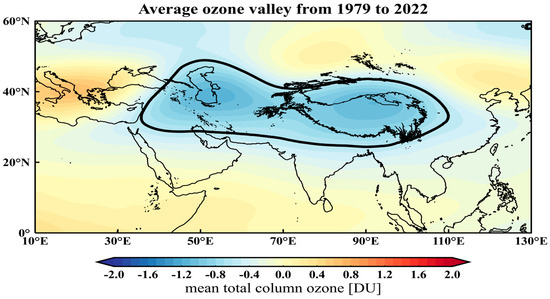 Since this time, improved observational techniques, especially the launch of satellites, have allowed researchers to more accurately study ozone at all altitudes across the globe [11,12,13,14,15,16,17,18,19]. The researchers found a low ozone value region similar to the Antarctic ozone hole in the upper troposphere–lower troposphere (UTLS) region in the middle and high latitudes of the Northern Hemisphere, known as the “Ozone Valley”. This concept was initially proposed by Zhou and Luo [20], and the valley predominantly spans areas near two major mountain ranges, namely the Tibetan Plateau (TP), known as the third-level roof of the world, and the Rocky Mountains in North America. Between these two ozone valleys, the ozone valley over the TP is the most profound, characterized by the lowest local atmospheric total column ozone (TCO) compared with the areas of the same latitude, especially in summer. Analysis using TOMS (total ozone mapping spectrometer) data has revealed the ozone valley in the TP is formed in summer (June–September), during which time, the discrepancy in the ozone content between the TP and the eastern region at the same latitude could reach 11%.