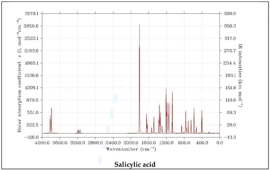 - Suresh, S.; Gunasekaran, S.; Srinivasan, S. Spectroscopic (FT-IR, FT-Raman, NMR and UV-Visible) and quantum chemical studies of molecular geometry, Frontier molecular orbital, NLO, NBO and thermodynamic properties of salicylic acid. Spectrochim. Acta A Mol. Biomol. Spectrosc. 2014, 132, 130–141. [Google Scholar] [CrossRef]