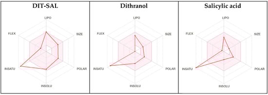 The following supporting information can be downloaded at https://www.mdpi.com/article/10.3390/app14031094/s1: Table S1: ADMET results for SAL-DIT; Table S2: ADMET results for dithranol.