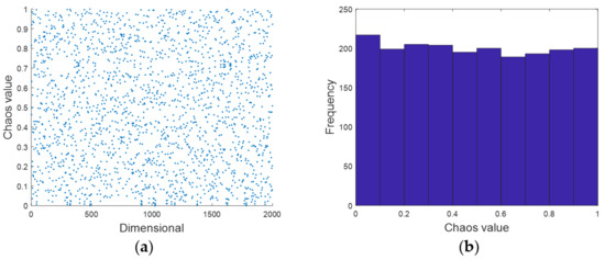 According to Equation (7), it is possible to generate a sequence of uniform distribution between [0, 1] of any length based on the randomly generated