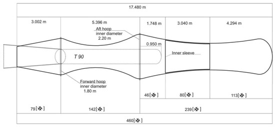 The extra DOD for a tested codend (see Figure 4), its rigging, the trawl doors, and the trawl lines (warps, sweeps, and bridles) were arranged to be released and retrieved from the cutter’s stern by a trawl winch. The sweeps, bridles, and the body of the trawl, along with elements of its armament, were wound onto the net winch. Due to the use of large hoops for spreading the codend’s cover, the cover was retrieved manually. Emptying the codend, the divided cover, and its inner sleeve of caught cod was carried out by packing. “Packages” of caught cod were hoisted via a lifting strap (halving becket), using a rope wound on the sliding drum (capstan) of the trawl winch.