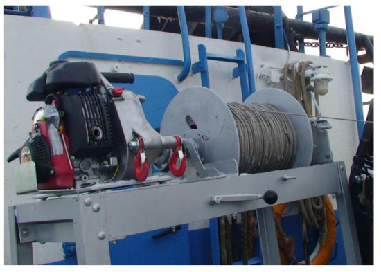 The rope closing the cover’s inner sleeve was pulled in using a prototype, autonomous, combustion-driven winch installed onboard Necfish cutters (see the photo in Figure 11). This winch was permanently attached to the deck in the stern part.