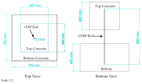 Dimension of Top and Bottom Concrete with embedded CFRP Rod.