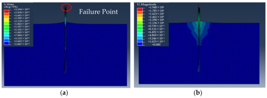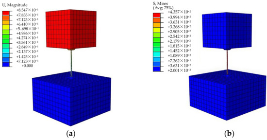 Numerical Analysis (Abaqus): (a) Displacement Magnitude; (b) Strain and Stress.