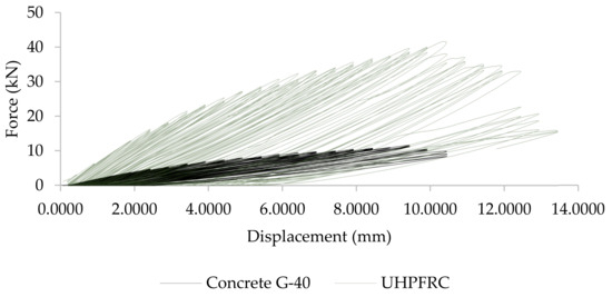 Force–Displacement of G40 Concrete vs. UHPFRC.