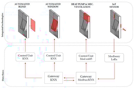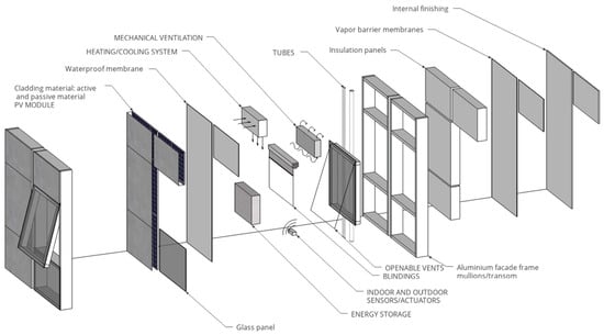 13]. Various systems such as heating, ventilation, air conditioning (HVAC), automated blinds, solar panels, and photovoltaics technologies can be integrated into the building envelope to optimize energy efficiency, exploit renewable energy, enhance thermal insulation, improve indoor air quality, and assure high and responsive IEQ [