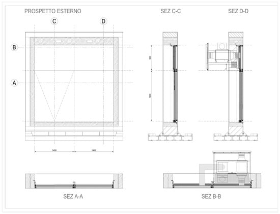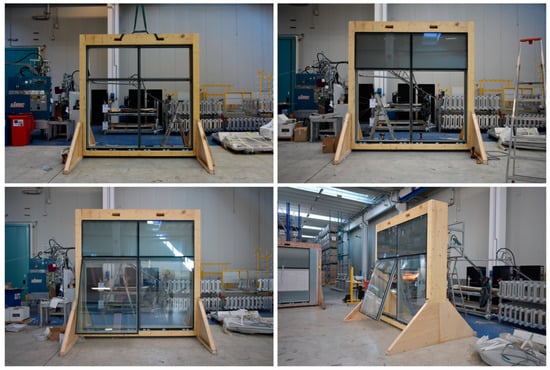 Precisely, the prototype comprises two unitized curtain wall façade modules with vision and spandrel panels to replicate the real conditions in a building. Specifically, the façade system technology is a close cavity façade (CCF) with structural sealant glazing of the glasses to the aluminum profiles. The CCF system exploits the cavity generated between two layers (approximately 53 mm) to increase the thermal performance of the system. Externally, a low iron heat straightening glass (55.2) with anticondensation coating is used to limit the radiative exchange between the sky and the glass. Internally, the vision panel consists of triple glazing (4-18-4-18-44.2) with argon (90%) and a double low-e coating in face #3 and #5. The spandrel panel is composed of the same external glass, and a metal sheet is installed behind the outer layer to ensure façade uniformity from the outside and cover the technical space and insulation layer. From a thermal point of view, this system has the following performance: