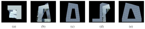 First, the image was divided into 36 regions using rays emanating from the center of the mass. Then, one direction was selected as the initial direction. Next, the votes in each angular interval were counted and a threshold value was set. Finally, the intervals below the threshold value were judged as “empty regions.” In the view of the landmark building model, the hole graphs were generally voted evenly, whereas there were always some areas in the concave unclosed graphs that were judged as “empty areas” due to their small percentage. In this way, holes were distinguished from concave unclosed structures.