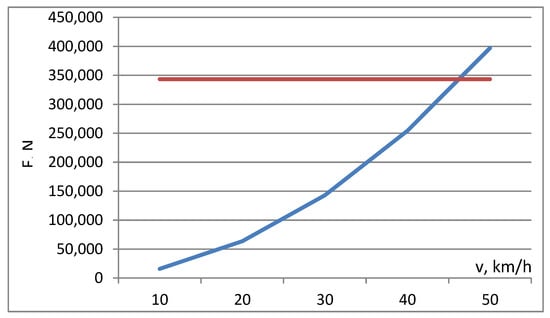 when driving around a bend in the road, under the influence of centrifugal force, the wheels of the vehicle may lose their grip on the road surface and begin to slide in the transverse direction. The critical traction speed in a corner indicates the maximum speed at which a vehicle can pass a corner without losing the grip of the wheels on the road surface and without starting to slide in the transverse deflection. Stability is a key criterion for assessing a truck’s appropriateness for employment. When a vehicle’s transverse stability is compromised near a curve in the road, it either skids or flips over. In order to maintain the vehicle’s stability, the conditions of preventing rolling and sliding are established [26].