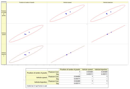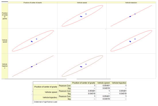 Figure 4 provides a visual representation of the relationship between the speed and the height of the center of gravity. The critical juncture occurs when the intersection of the turning speed and sliding speed curves is reached. In this scenario, if the height of the vehicle’s center of gravity is 2.4 m above the ground and the vehicle is traveling at a speed of 34 km/h, a rollover event is expected to transpire.