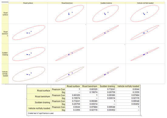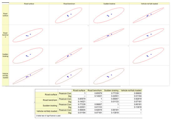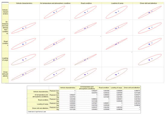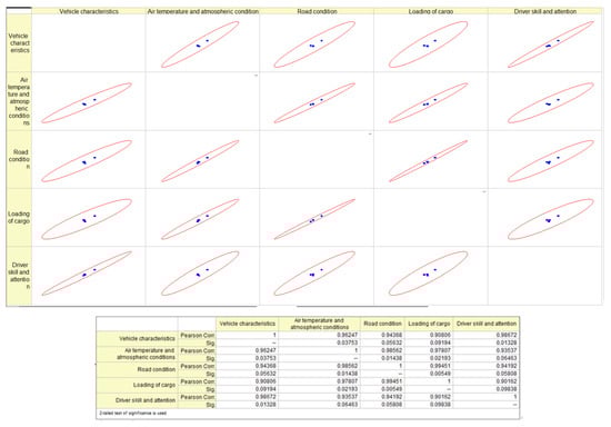 The findings indicate that the ranking of the most hazardous elements varies depending on the nature of the cargo [37,38,39]. When assessing the relationship and its magnitude among several components, it is crucial to determine their interdependence.