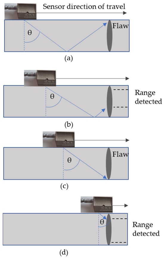 - Olympus Europa. Olympus—Evident. Ultrasonic Flaw Detection Tutorial: 6.2 Angle Beam Probe Selection; Olympus Europa: Hamburg, Germany, 2015; Available online: https://www.olympus-ims.com/en/ndt-tutorials/flaw-detection/angle-beam-probe-selection/ (accessed on 12 April 2022).
