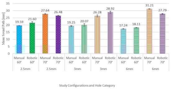 - The characterization of internal defects by the robotic system with a speed of 6 mm/s was comparable to the actual defect size and to the values attained by the manual approach.