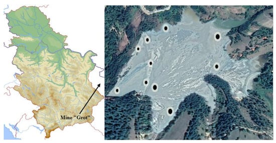 Mining is one of the most significant industries in Serbia. Of the total gross domestic production in the Republic of Serbia, metallurgy accounts for 10% of the total manufacture of basic metals and metal products [1]. The Grot Mine is one of the biggest and most significant, located in southeastern Serbia and mainly exploiting lead and zinc ores. The total content of lead and zinc in the ore is about 10.5 wt %, which indicates that about 90 wt % is waste material. The flotation process has generated around 5.5 million tons of waste material until now, mostly in a state of biological vacuum [2]. The area around the Grot Mine is mostly composed of crystalline shales, predominantly of the Early Paleozoic and, to a lesser extent, of the Proterozoic age, with larger and smaller masses of Paleozoic and Triassic granitoid rocks and large Surdulic Paleogene granodiorite plutons. The Grot Mine represents a geo-economic unit within the Paleozoic metamorphic shale complex of the Serbian–Macedonian mass, located on the eastern perimeter of the Surdulian granodiorite. The minefield is located in a crystalline nucleus, located between the Carpatho-Balkanids in the east and the Vardar zone in the west [3]. In the Metallogenic Region of Besna Kobila, the ore deposits are related to Neogene volcanic–plutonic complexes. Mineral associations consist of sulfides of lead and zinc, locally copper and/or molybdenum. In the morpho-structural sense, the deposits are of the quadruple/impregnation type, hydrothermal-wire, lens-plate, metasomatic and wire-impregnation types [4]. The deposits were formed by metasomatic alteration of marble and calcschist under the influence of hydrothermal solutions rich in Pb, Zn and Cu. Vertical mineralization intervals are over 400 m [5]. Based on hydrogeological features, this granodiorite massif is characterized by a large area of open cracks and medium water permeability [6].