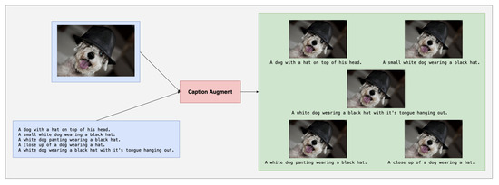 To improve the model performance for few-shot learning, we found each image corresponding to five images in the training dataset, which could make more training data. Furthermore, we analyzed the captions of images and found that the captions usually described the image from different perspectives, which could provide more information about each image. So, we constructed the training data with multiple captions to help the model understand each image from different viewpoints. That could also reduce the cost of the task because, in an application scenario like the medical imaging field, it is rare for researchers to obtain a medical image of magnetic resonance imaging (MRI) about a rare disease due to cost and rarity. So, only labeling the text based on the image could reduce the cost to obtain more data, which is a useful method to solve the few-shot problem to achieve the data augment. As shown in Figure 2, there are five captions of each image in the training data. We constructed five pairs of image captions to increase the training dataset size.