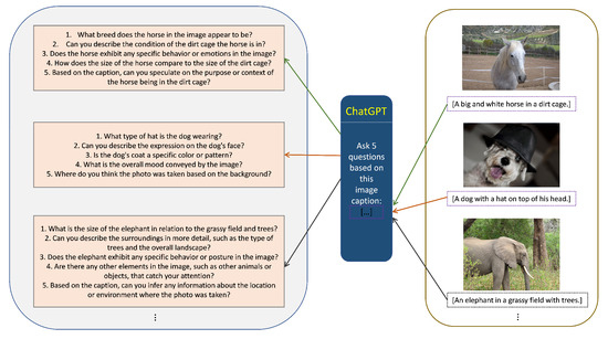 In the VQA task, one image corresponds to one question and one answer. However, the dataset we constructed through the caption alignment method only has the images and captions, without any questions. However, because the training data COCO2017 have no question of the images, it cannot learn the complete task form, which will make the model not do well in the actual task. To construct a VQA task, we used the question generation method, which uses the captions as the answer and generates the questions based on the answers by using ChatGPT [16]. That could help the model understand how to respond to the answers based on images and questions tasks. As shown in Figure 3, we used the caption corresponding to the image to generate multiple questions through ChatGPT.