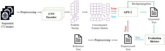 This paper is structured as follows: Section 2 presents the data collection and preprocessing methods for training the fine-tuned CNN classifier and for collecting and preprocessing data for CT image captioning. In Section 3, a detailed explanation of the structures of the CNN classifier and GPT-2, along with hyperparameters, is provided. Section 4 describes the evaluation metrics used and discusses the performance of the CNN classifier along with the results of the evaluation metrics. Section 5 concludes the work by detailing the results and findings of this paper.