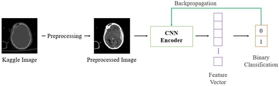 The automatic text generation model for ICH CT images proposed in this study is depicted in Figure 2. Firstly, pre-trained CNN models are fine-tuned for binary classification tasks, as shown in Figure 3.
