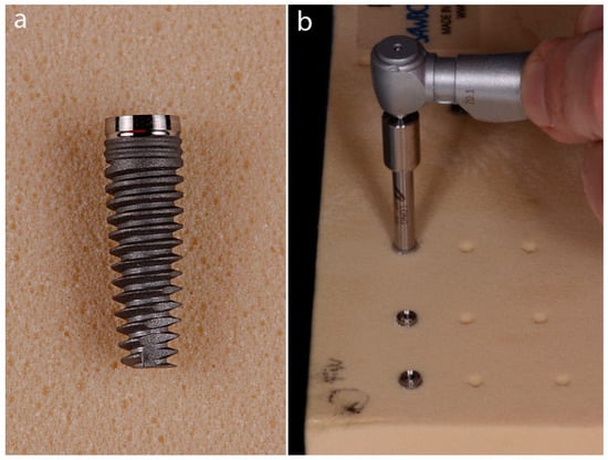 - Tabassum, A.; Meijer, G.J.; Walboomers, X.F.; Jansen, J.A. Evaluation of primary and secondary stability of titanium implants using different surgical techniques. Clin. Oral Implant. Res. 2014, 25, 487–492. [Google Scholar] [CrossRef]