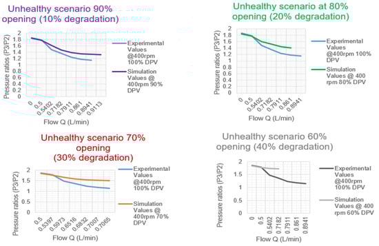To investigate these effects, a study of two aircraft HPFCASs was carried out. The working principles of the HPFCAS for the different aircraft in relation to hydraulic system performance were the same. To compare their performances against related flight conditions and identify what appear to be observed root causes and effects on the HPFCAS, it was noted that demand for responses is channeled to a hydraulic reservoir through transducers. The hydraulic reservoir is then used to power the required actions. To obtain the required data that would be useful in supporting fault findings and can be used for diagnostics of such complex systems, an experimental model as an analogy of the two aircraft’s HPFCASs was developed as a test rig in the laboratory based on the functions of their different components. The two system cases provided a fair representation of the HPFCAS and mimicked the functions of a baseline HPFCAS for any aircraft. To ensure a robust representation, experimental data were collected to establish the basis for component functional behavior or characteristics. These data were obtained under healthy and degraded scenarios. Using the same conditions of operation, faults were introduced on the components based on the symptom vectors earlier described. The data for unhealthy cases were collected. Thereafter, a system-by-system breakdown of the component models was made and integrated. A simulation model of the experiment was developed in MATLAB Simulink and Simscape version 2023a using the experimentally defined conditions. Simulations were completed for the healthy cases, and results were obtained. After these, the faults were injected into the components to establish the unhealthy cases and simulated. Different values were established in both the healthy and unhealthy situations, respectively. The comparison between the experimental data and the simulated model data obtained provided verification and validation results of the developed model. These provided the requirements needed for the expected diagnostic of the aircraft’s HPFCAS, as different conditions of operations of the components were altered with the different data results obtained.