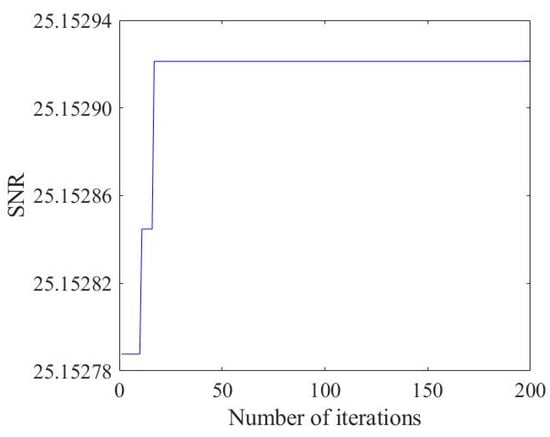 The variable a in the threshold function is initially explored with three values (a = 0.1, a = 0.5, a = 0.9) in Equation (8) for noise reduction. Given the randomness in noise addition, the subsequent results represent the average of five noise reduction attempts to mitigate errors. Table 1 summarizes the obtained signal-to-noise ratio (SNR) and root mean square error (RMSE) values. It is observed that different values lead to varied results, lacking clear regularity. To refine the selection of a, the simulated annealing algorithm is introduced, determining the optimal value as 0.7124 for improved threshold noise reduction. Figure 3 displays the simulated annealing iteration curve.