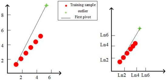 Principal component analysis (PCA) is a widely used technique for dimensionality reduction [27]. Its core idea involves mapping high-dimensional data to a low-dimensional space through a linear transformation while retaining as much variance in the data as possible. Dimensionality reduction is achieved by finding the main components of the data and projecting them into a new coordinate system. PCA effectively mitigates information loss by downscaling the data using the feature matrix [28]. However, outliers with large variance values can impact the data’s variance during downscaling, influencing the direction of each principal component of PCA. Simply removing outliers may result in the loss of valuable sample information. To address this, we propose a new dimensionality reduction method in this section—logarithmic transformation principal component analysis (LT-PCA).
