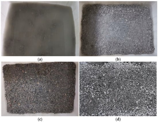 The modulus of the 3.30 water glass solution was diluted with water to a 5% concentration, placed in a bucket, and slowly added to the processed regenerated coarse aggregate while mixing, ensuring that the liquid surface was higher than the regeneration of coarse aggregate by 5–10 cm. After 1 h of immersion in the regenerated coarse aggregate, it was fished out and placed in a cool, ventilated place to dry naturally for a week, and then bagged for storage.