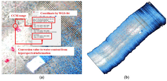 Application of equation for water content through hyperspectral information in orthophoto: (a) Confirmation of conversion to water content; (b) CCM.