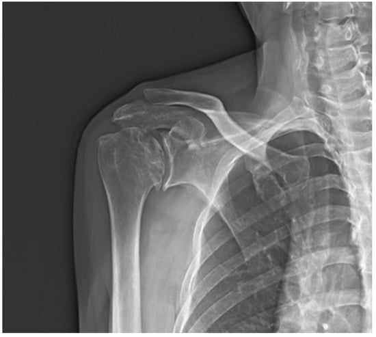 - Kim, J.K.; Jeong, H.J.; Shin, S.J.; Yoo, J.C.; Rhie, T.Y.; Park, K.J.; Oh, J.H. Rapid progressive osteonecrosis of the humeral head after arthroscopic rotator cuff surgery. Arthroscopy 2018, 34, 41–47. [Google Scholar] [CrossRef] [PubMed]