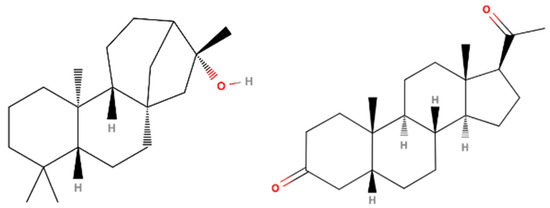 As one significant marker of both extracts, we focused on ceruchinol ((-)-(16S)-Kauran-16-ol, Figure 1), which, like other tetracyclic diterpenes, shows a remarkable prevalence in lichen species and various vascular plants [29,31,32,33,34,35]. Our objective was to evaluate the potential of ceruchinol for a commercial application and to generate a proposal for similar research in the future.