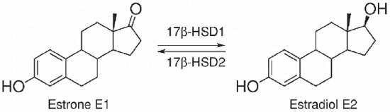 Enzymatic reaction catalyzed by 17-β-dehydrogenase 1 (17β-HSD1).