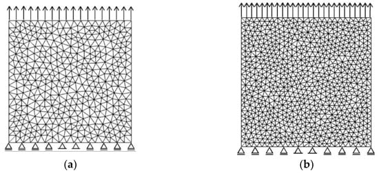 Uniaxial tension test meshes: (a) Mesh1-1210; (b) Mesh2-2570.