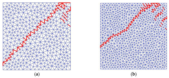 - Oliver, J.; Huespe, A.E.; Sanchez, P.J. A comparative study on finite elements for capturing strong discontinuities: E-FEM vs. X-FEM. Comput. Methods Appl. Mech. Eng. 2006, 195, 4732–4752. [Google Scholar] [CrossRef]
